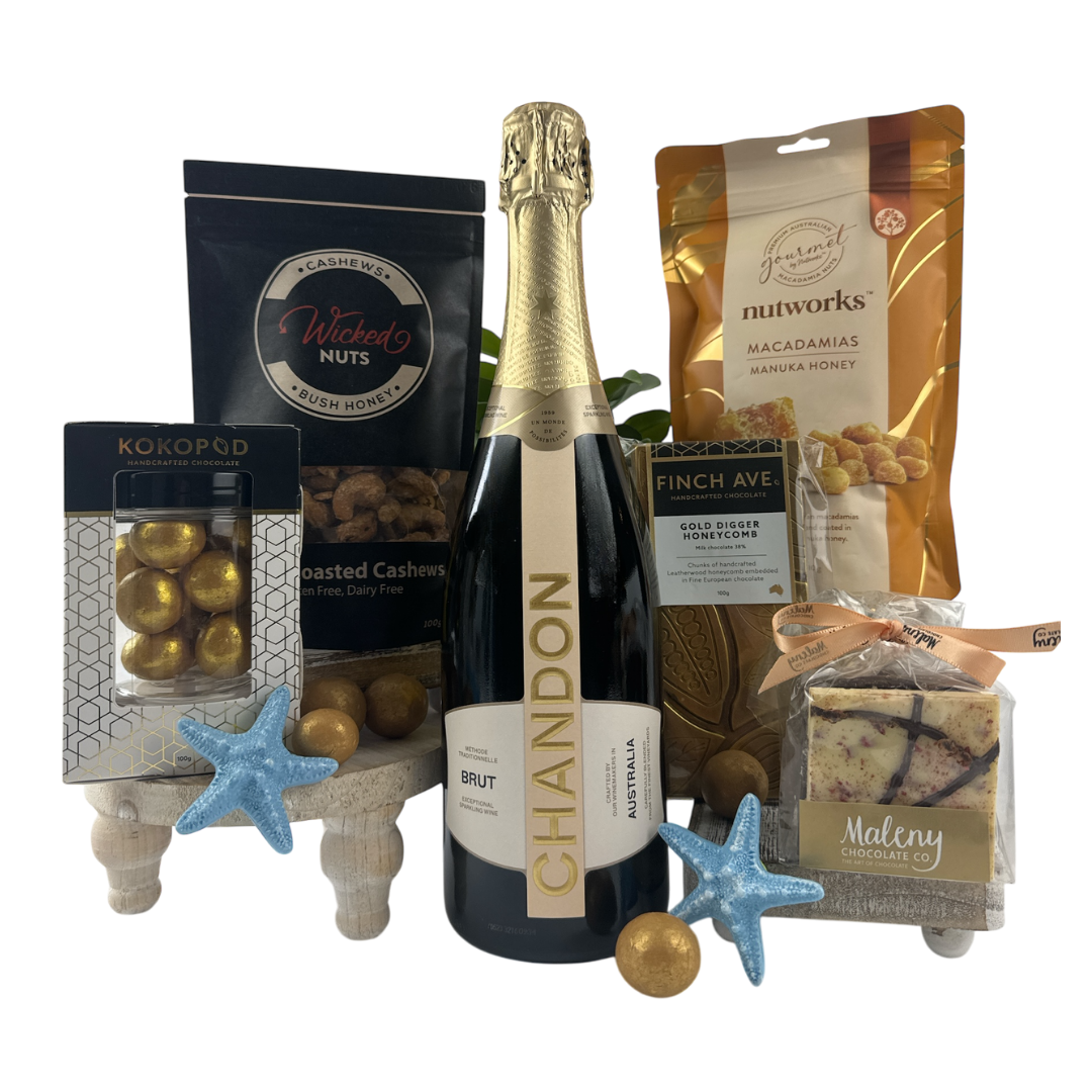 Pop the bubbles and savour the sweetness with this celebratory hamper. With Chandon Brut and a bounty of gourmet honey-roasted and chocolate treats, it’s made for moments worth toasting.
