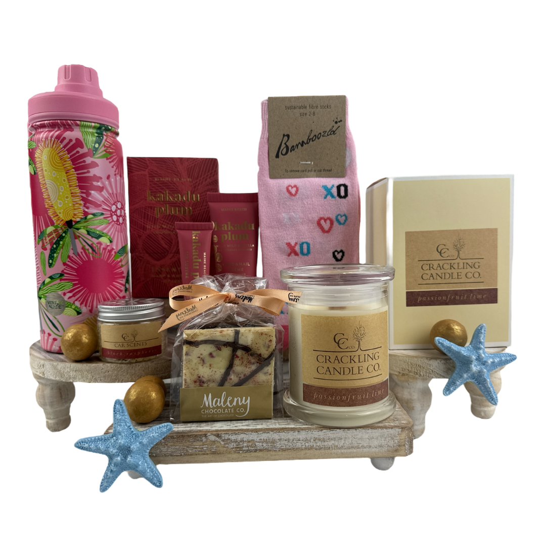 Pamper her with a beautifully curated self-care hamper designed on the Sunshine Coast. Featuring quality body products, chocolate, a scented candle, and cozy socks, the Pink Serenity is a thoughtful gift for birthdays, thank-yous, or just because.