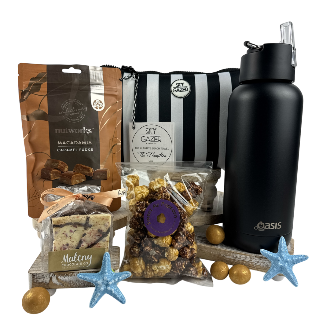 The Tidal Edit is your go-to gift for beach lovers and coastal daydreamers. Featuring a stylish sand-free towel, insulated drink bottle, and sweet artisan snacks from the Sunshine Coast – it’s a taste of summer, all year round.